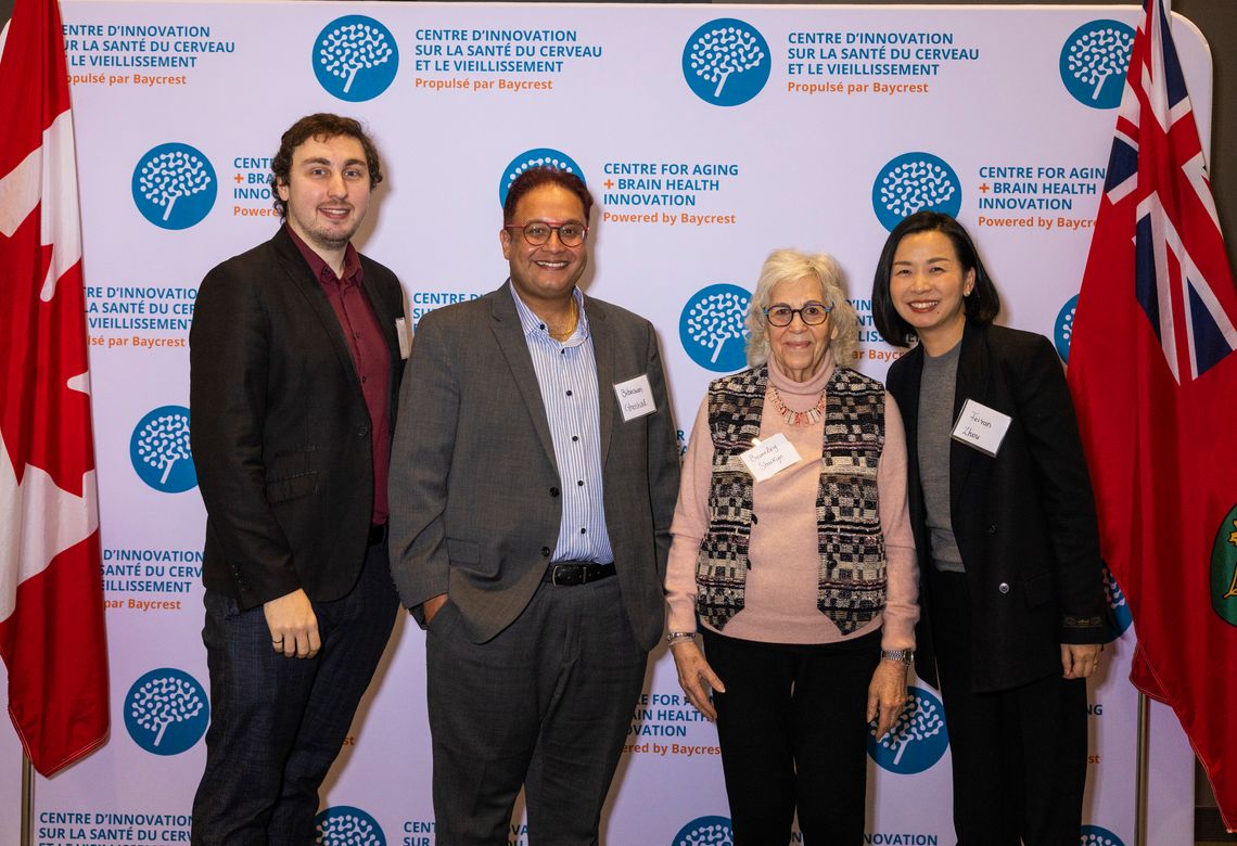 Over 40 people attended the pitch event, which included a panel of expert judges who evaluated six pitches and, after deliberating, awarded the prize for best overall pitch to Lucas Monter of NeuroSpritz Inc. and the People’s Choice to Yuvraj Walia of Cogni. Among the judges was Beverley Shukyn, a member of CABHI’s Lived Experience Council, which provides co-design consultation to our companies as part of our suite of acceleration services, ensuring that older persons’ lived experiences are reflected in solutions. Other judges were Bibaswan Ghoshal from OBIO, Feiran Zhou from Ontario Centre of Innovation, and Mark Aquilino from Epiloid Biotechnology.