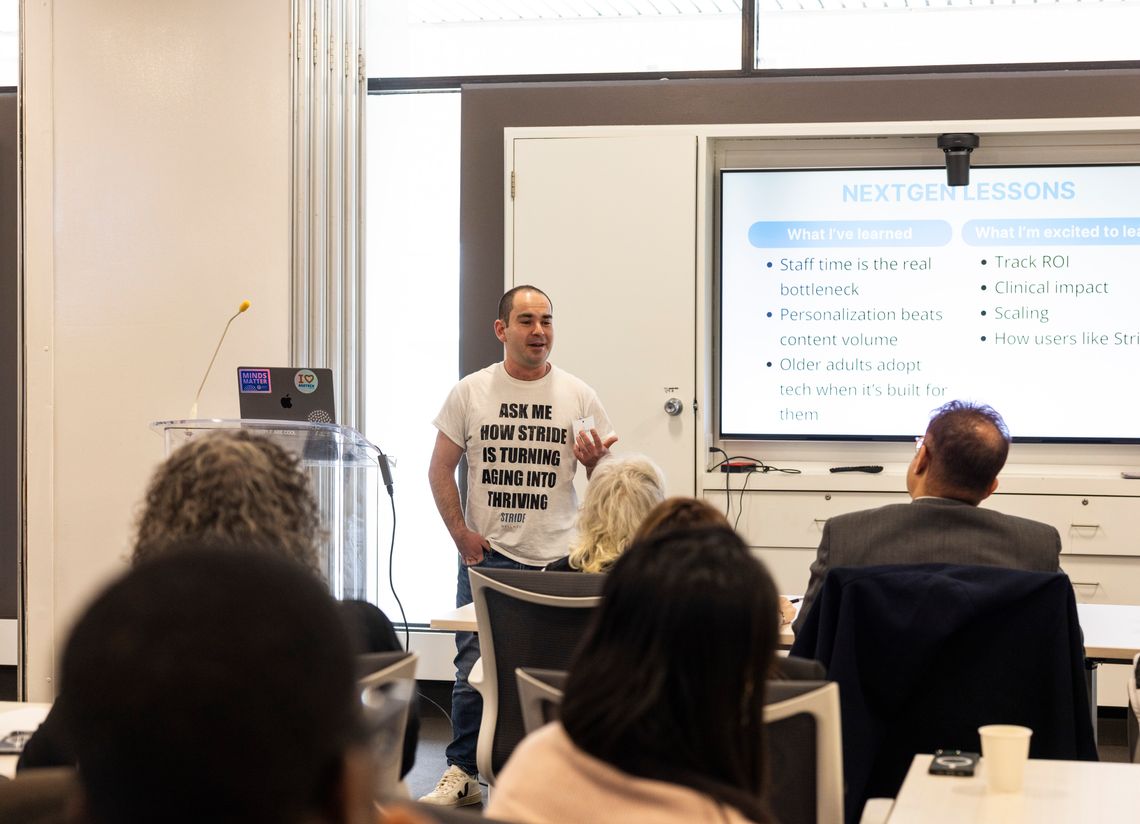 Sam Pencer of Stride Wellness (Pitchee): A mobile app offering short, personalized exercises and brain games for seniors to enhance mobility, balance, and cognition. It features simple visuals, habit-building rewards, and printable plans for caregivers and older adults.